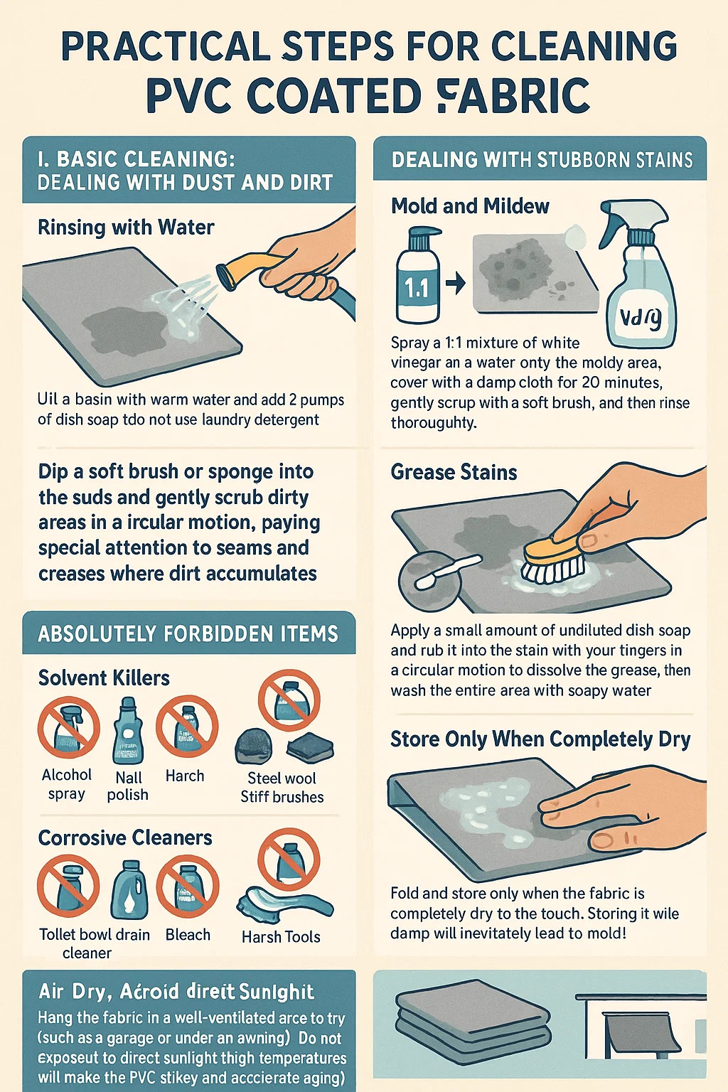 Evo praktičnih koraka za čišćenje PVC presvučena tkanina :
