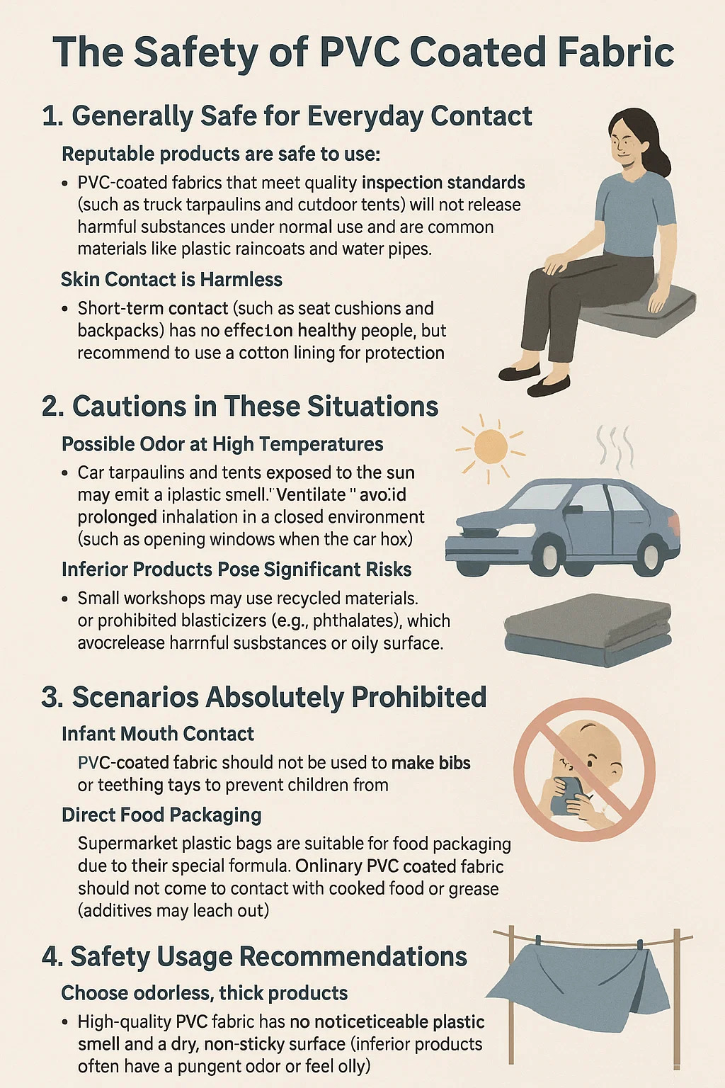 Slijedi objašnjenje sigurnosti tkanine presvučene PVC-om: